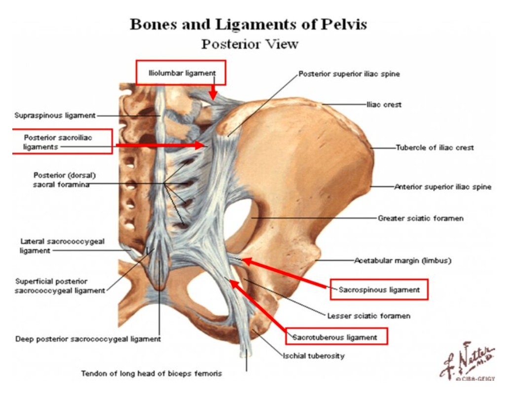 Lateral sacrococcygeal ligaments – run from the lateral aspect of the sacrum to the transverse processes of Co1.